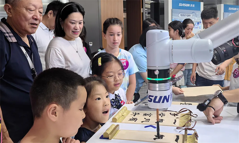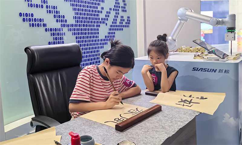 也有家屬們自告奮勇,與小機(jī)器人比拼角逐、揮毫潑墨,在互動(dòng)中更直觀地感受著令人興奮的創(chuàng)新技術(shù)。