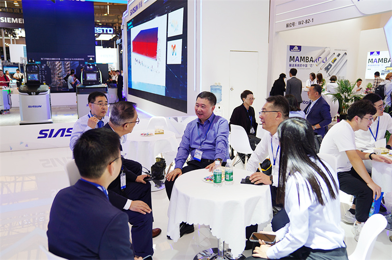 ▲ 合作伙伴、友商代表蒞臨新松展位洽談交流