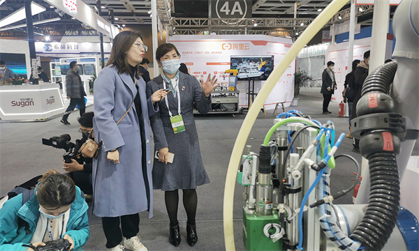 ▲ 多家知名媒體蒞臨新松展位采訪報道
