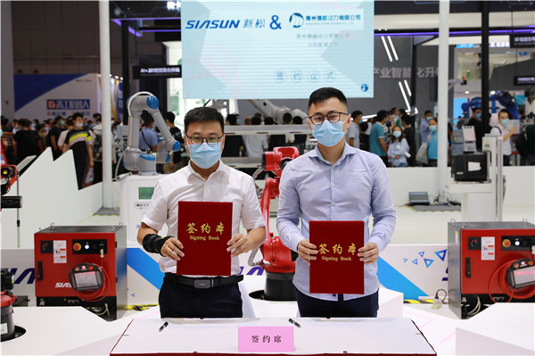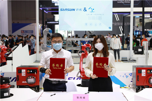 發布會現場,天津新松總裁助理呂忠偉代表新松公司與19家企業簽署“火弧”機器人訂購合同,達成訂購總計近200套。