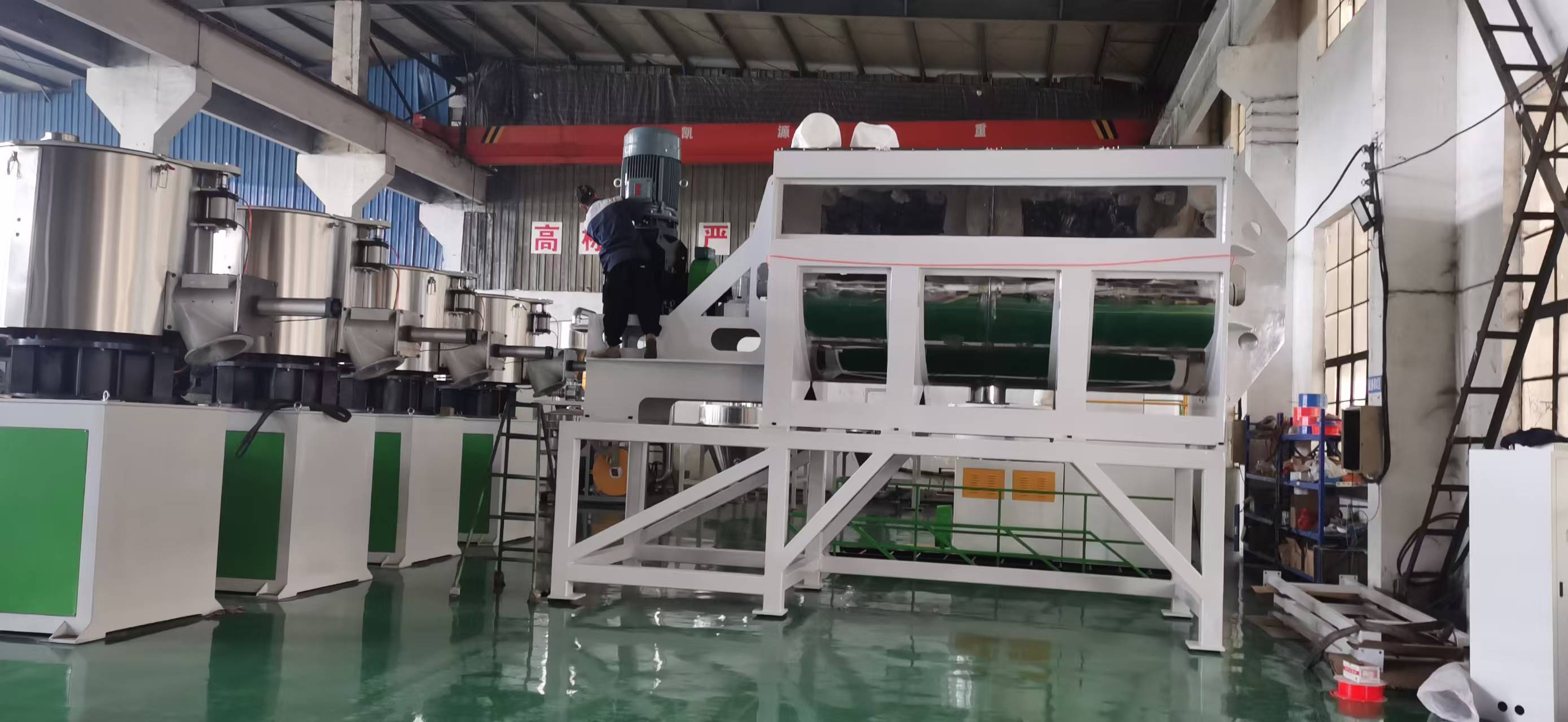 許多用戶在使用螺帶混合機時會發現,啟動運轉速度都正常的情況下,混合時間設定一個小時左右,為什么溫度上升很慢,而且還是低溫呢!要想解決低溫問題,應當先了解螺帶混合機的設備性能及原理,螺帶混合機的優點是:容積大裝料多,轉速慢,用戶對混合均勻度要求不高。缺點是:轉速慢摩擦升溫系數小,溫度上升較慢,要想升溫快,攪拌桶身需要做雙層,在夾層內注入320號導熱油,用加熱片或者加熱棒進行加熱即可達到預期效果。