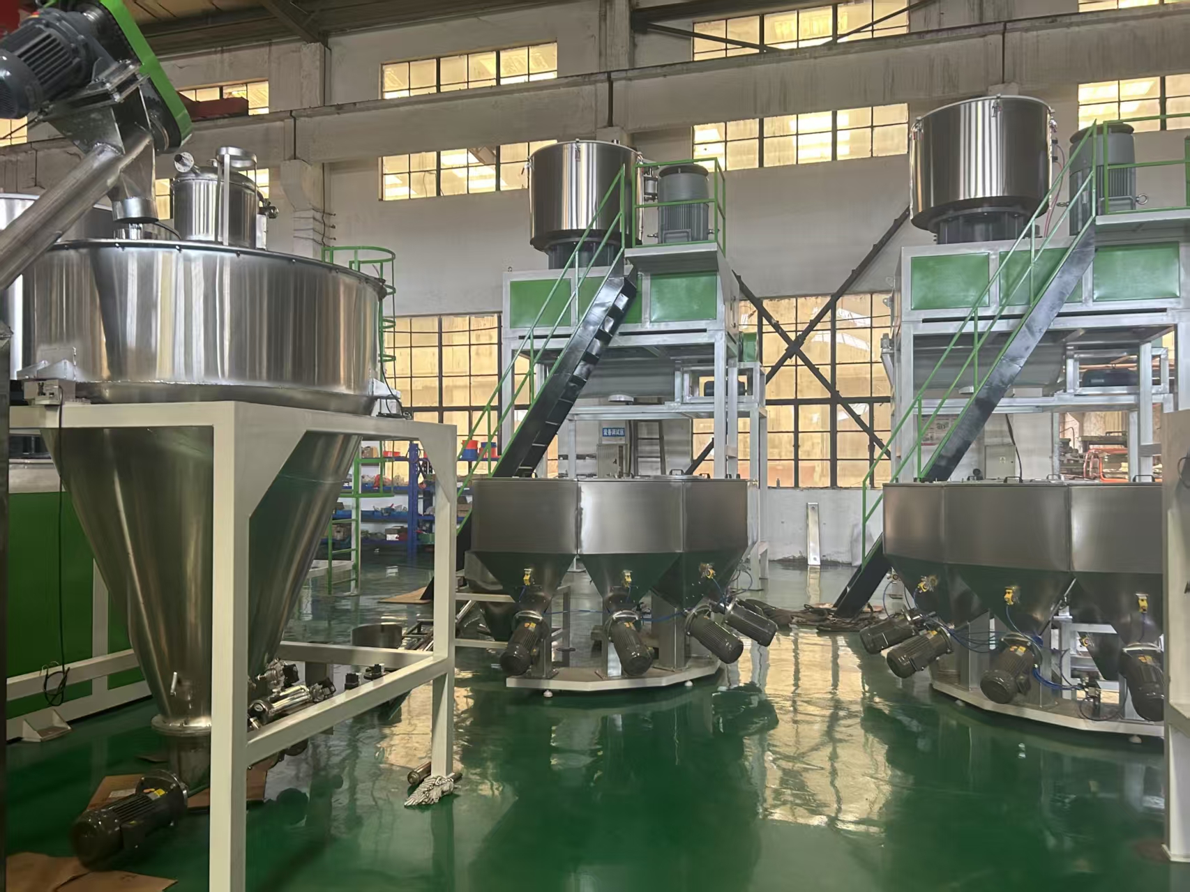 通過(guò)PLC或模塊化控制實(shí)現(xiàn)全廠集中供料,支持24小時(shí)連續(xù)作業(yè).集成原料除濕、干燥、輸送、計(jì)量及混合功能.配套中央供水與智能電氣系統(tǒng)形成整廠自動(dòng)化解決